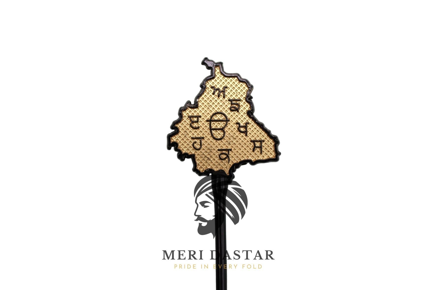 An extraordinary Baaj (Baaz) or Salai that will make your turban style polished and defined. The map of Punjab (ਪੰਜਾਬ) Baaj is crafted from high-quality metal, which makes it look strong and polished.